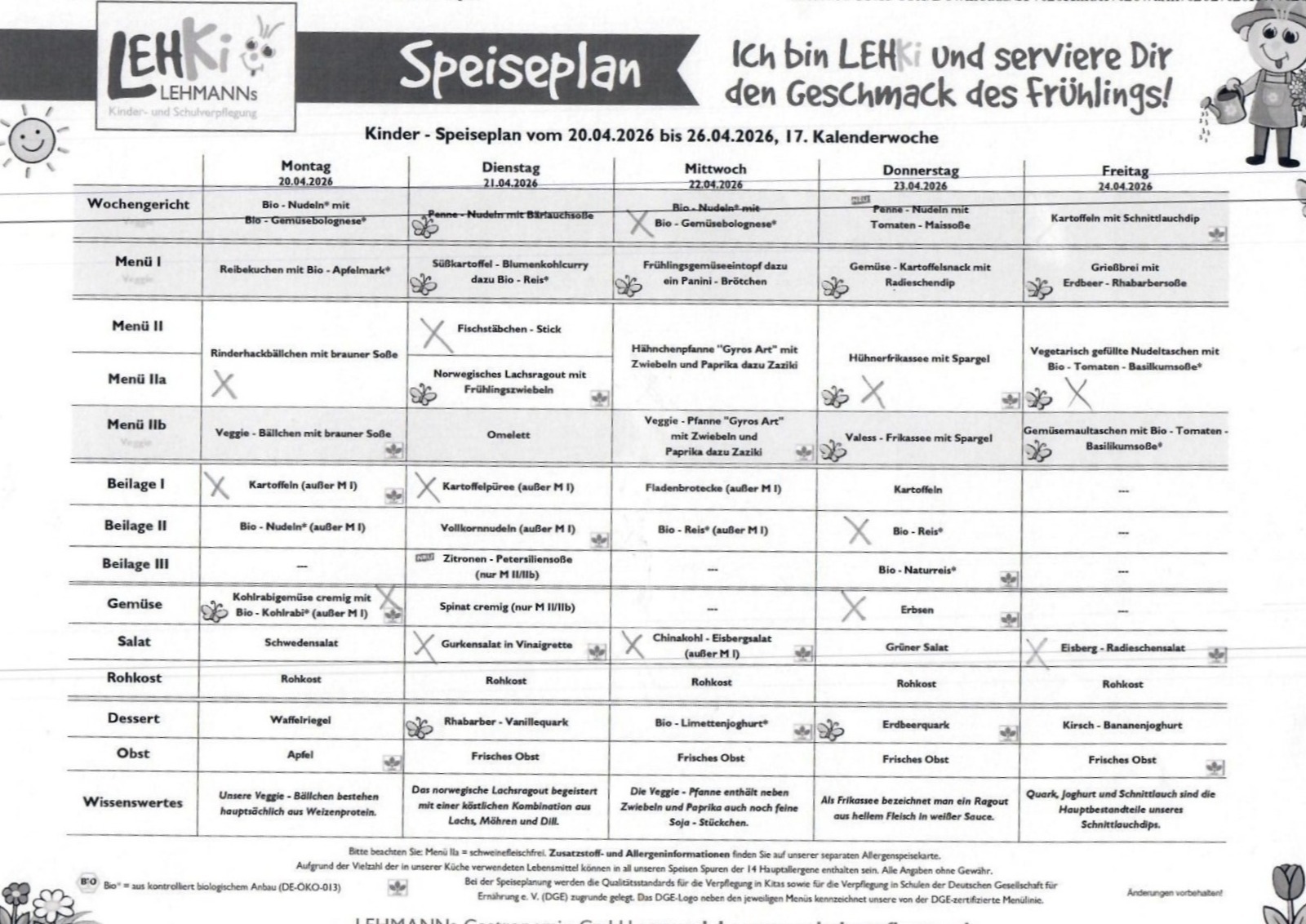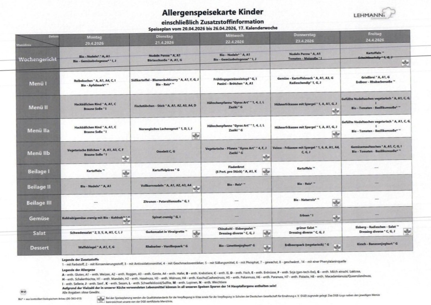 Das Mittagessen wird als Zeit der Ruhe und des entspannten Austauschs gestaltet. Von 11:30 Uhr bis 13:30 Uhr erhalten die Kinder ein warmes Mittagessen zum Preis von 75,-€.-/monatlich (Empfänger von Sozialleistungen erhalten das Essen kostenfrei). Dazu reichen wir täglich frisches Obst und Gemüse, Kekse usw. Für alle Kinder stehen Getränke zur Verfügung. Wir bieten jeden Nachmittag um 15:00 Uhr eine Brotzeit, bestehend aus leckerem Vollkornbrot mit verschiedenen Aufstrichen bzw. Aufschnitten, für Ihre Kinder an.