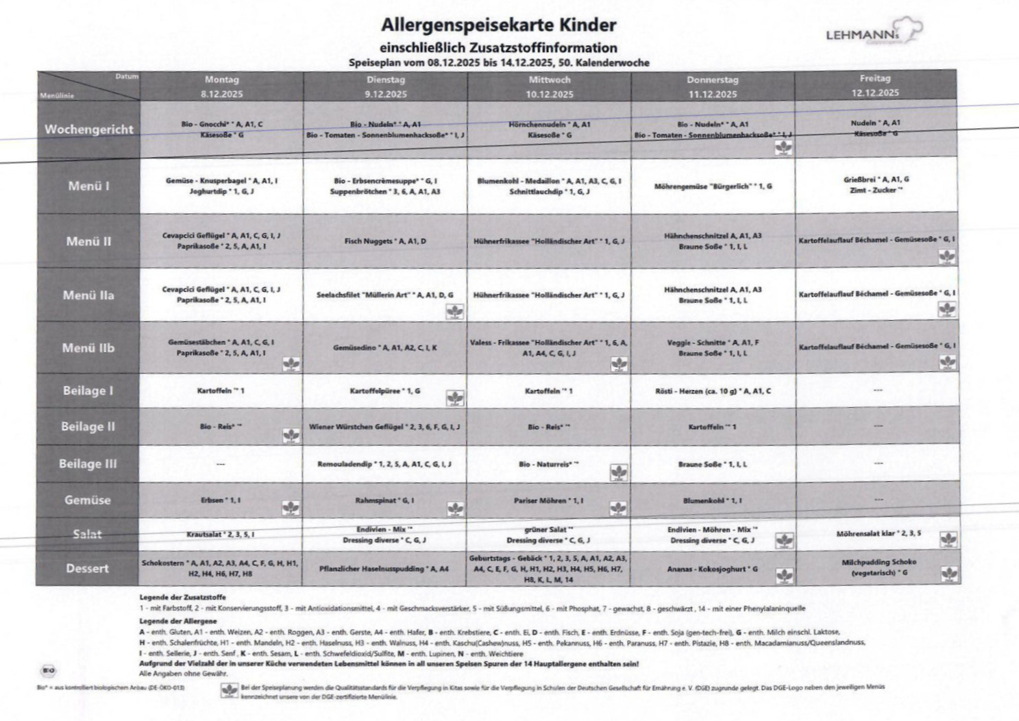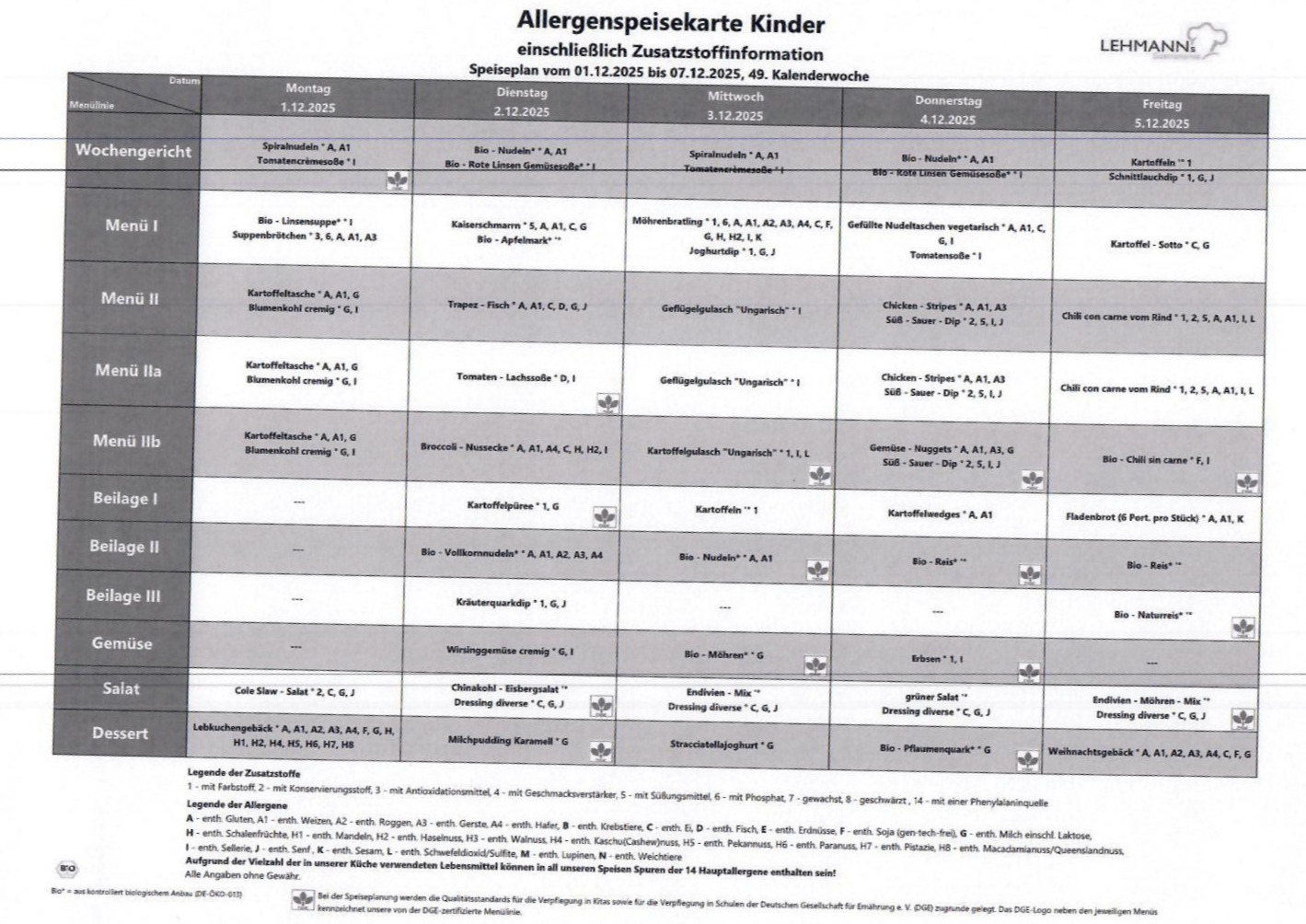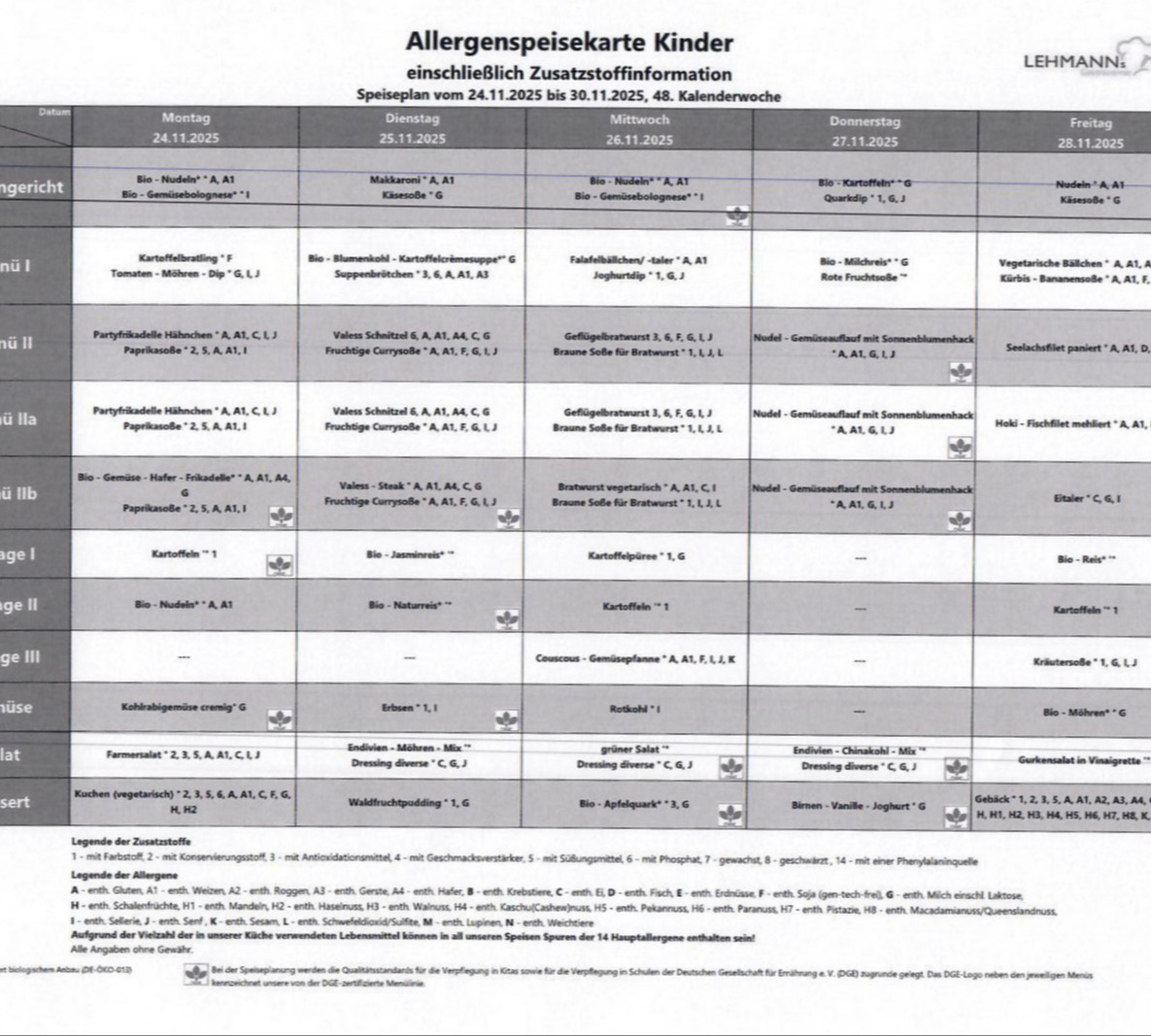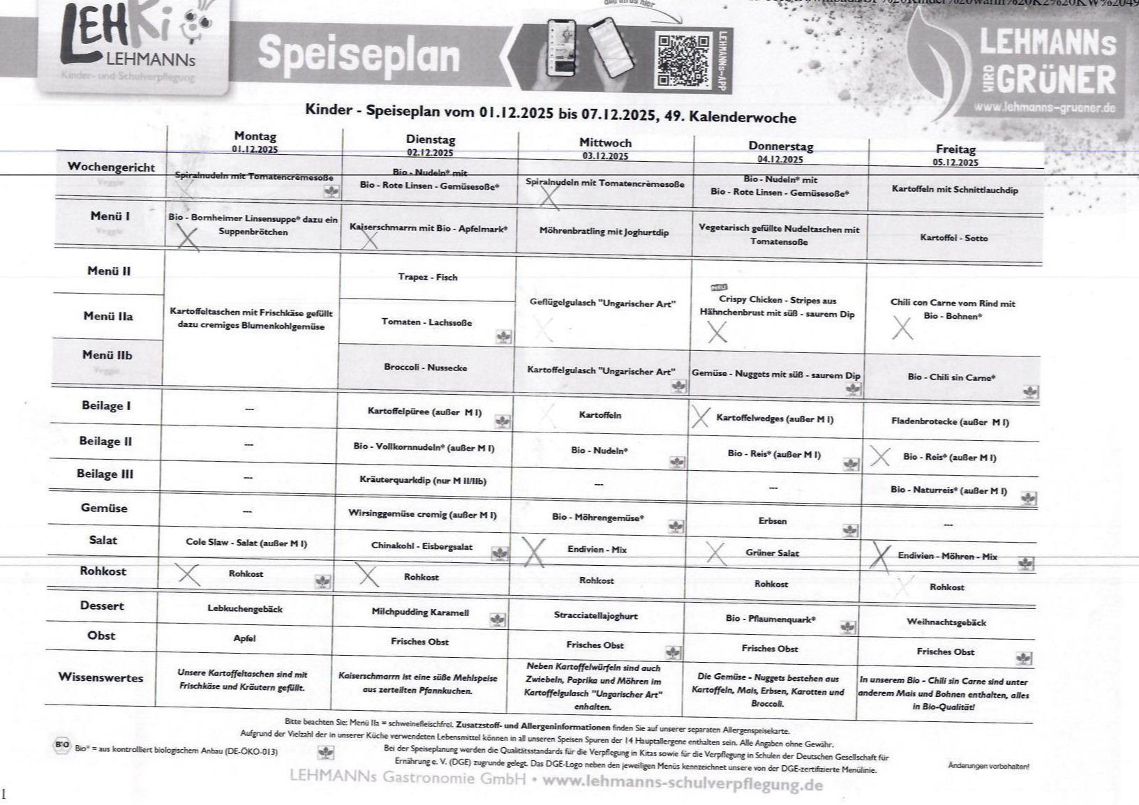 Essensplan KW 48